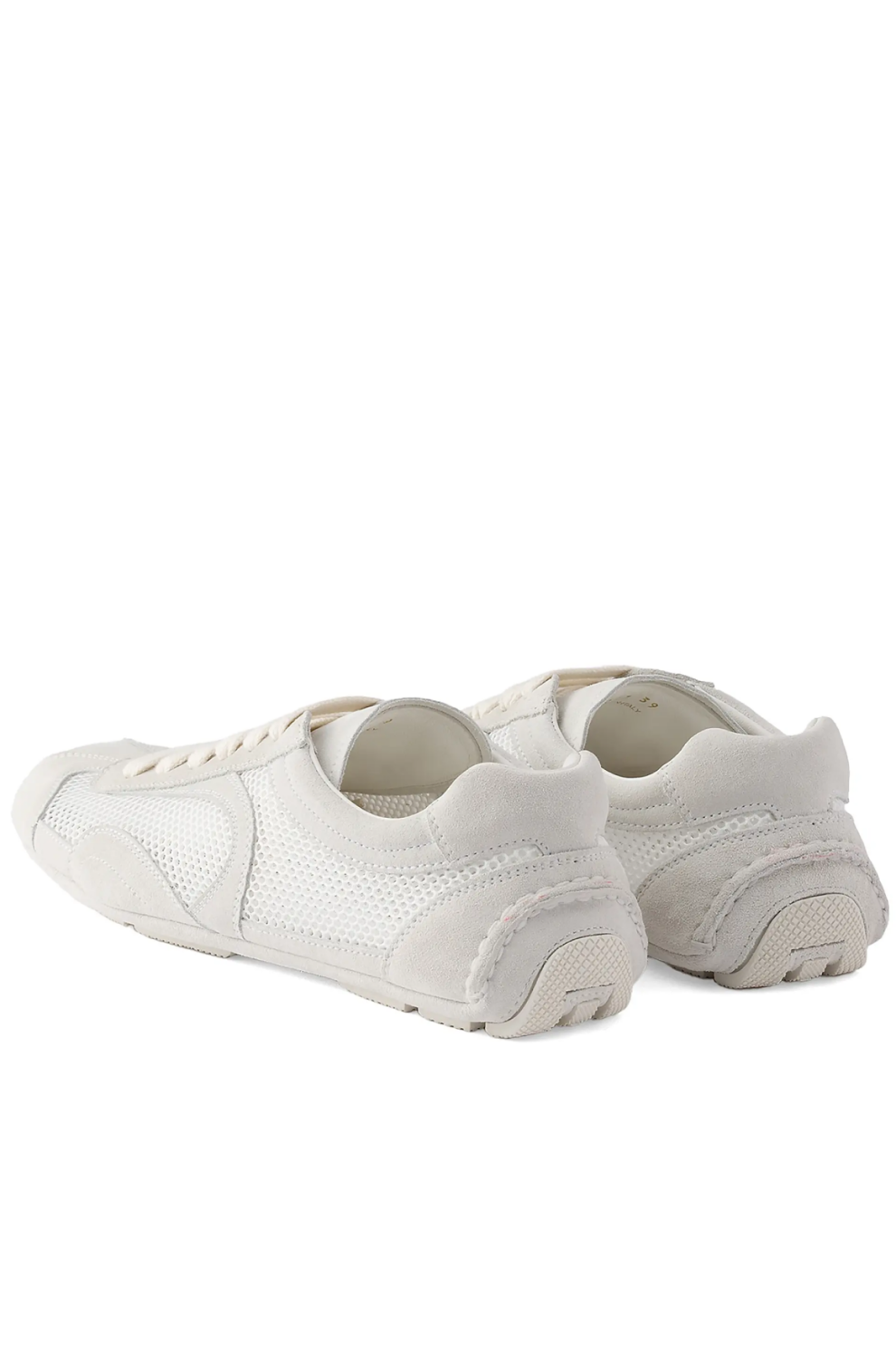 Мягкий верх выполнен из сочетания благородной замши и лёгкой сетки в универсальной белой расцветке, создающей ощущение воздушности и визуальной лёгкости. Низкий спортивный силуэт, благодаря которому кроссовки выглядят динамично и элегантно одновременно.