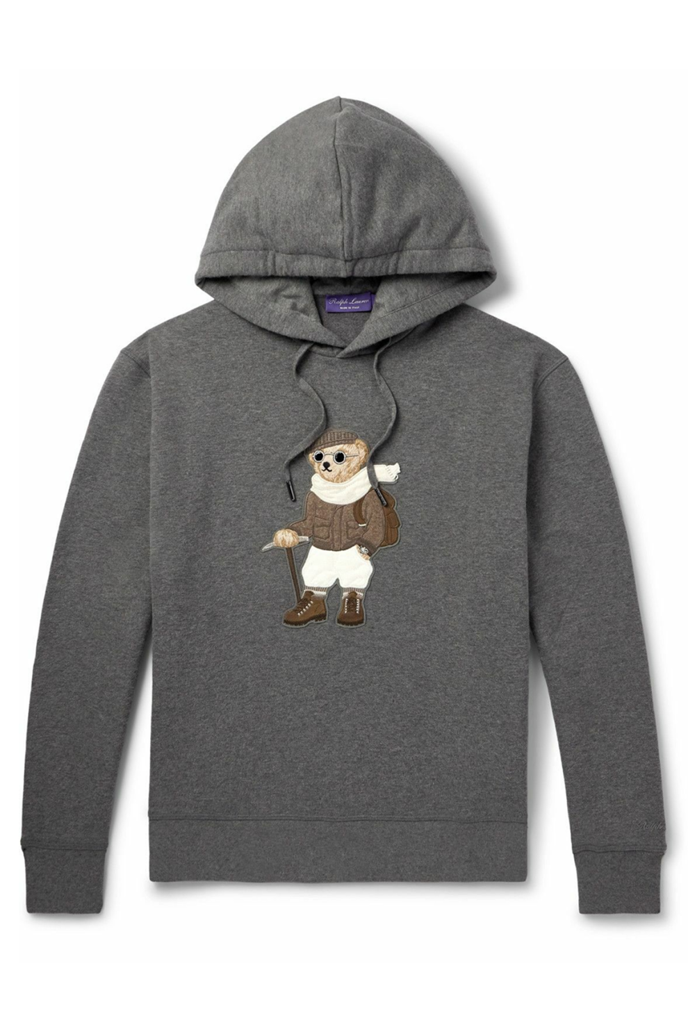 Это худи Ralph Lauren Purple Label сочетает премиальные материалы, утончённый дизайн и культовый стиль бренда. На передней панели расположена аппликация Polo Bear, готового к походу с рюкзаком, шнурованными ботинками и пикой — символ приключенческого духа и непринуждённого стиля.