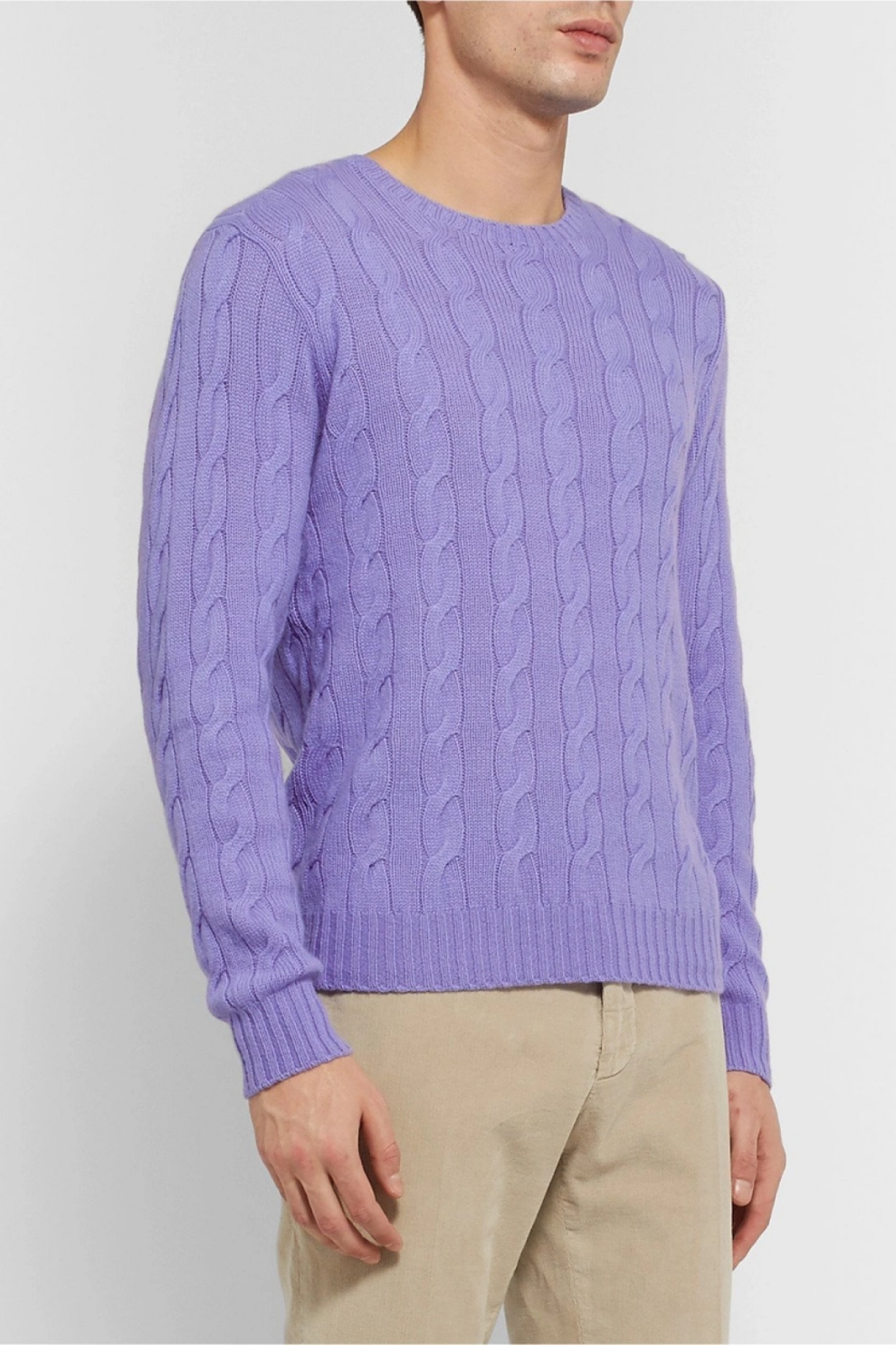 Модель выполнена в классической косичной рельефной вязке, где каждая деталь подчеркивает роскошь и уникальность изделия. Свитер универсален: его можно сочетать как с деловыми брюками и элегантными сорочками, так и с качественными джинсами, создавая непринуждённый, но премиальный образ, который легко впишется в гардероб современного джентльмена.