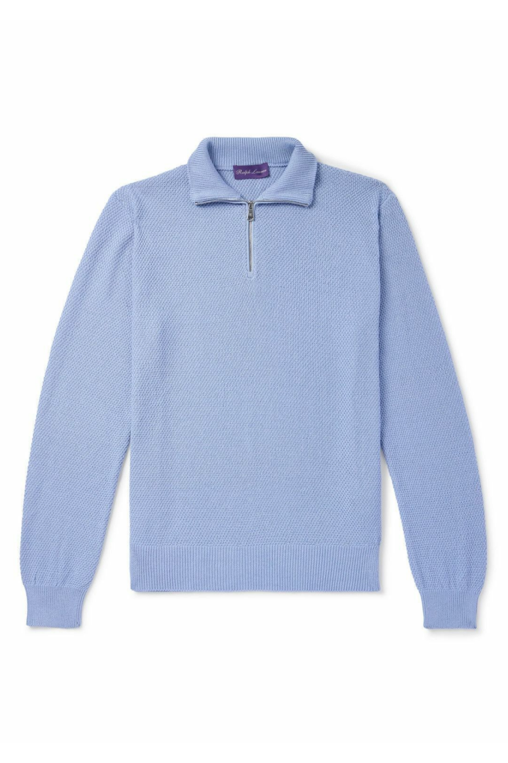 Голубой оттенок придаёт образу свежесть и лёгкость, а премиальные материалы и мастерство бренда Ralph Lauren Purple Label подчёркивают статус и утончённый вкус владельца. Этот свитер идеально подойдёт для неформальных деловых встреч, стильного повседневного гардероба или в качестве альтернативы спортивному пиджаку, сочетая комфорт, элегантность и премиальное качество.