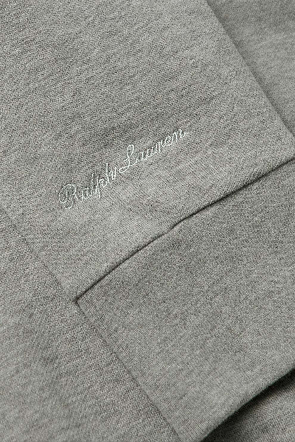 Лицевая сторона свитшота украшена иконичной апликацией Polo Bear, выполненной из канвы, хлопка, кожи и льна, что добавляет изделию глубину текстур и изысканность. Этот свитшот идеально сочетает премиальный casual с фирменной элегантностью Ralph Lauren, делая его заметным акцентом в гардеробе.