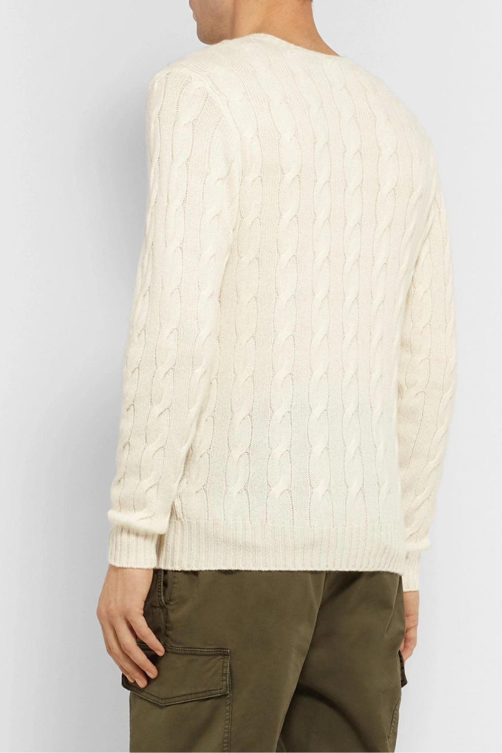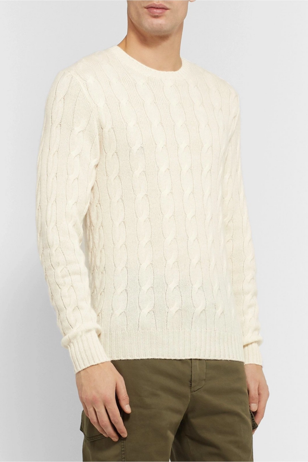 Модель выполнена в классической косичной рельефной вязке, где каждая деталь подчеркивает роскошь и уникальность изделия. Свитер универсален: его можно сочетать как с деловыми брюками и элегантными сорочками, так и с качественными джинсами, создавая непринуждённый, но премиальный образ, который легко впишется в гардероб современного джентльмена.