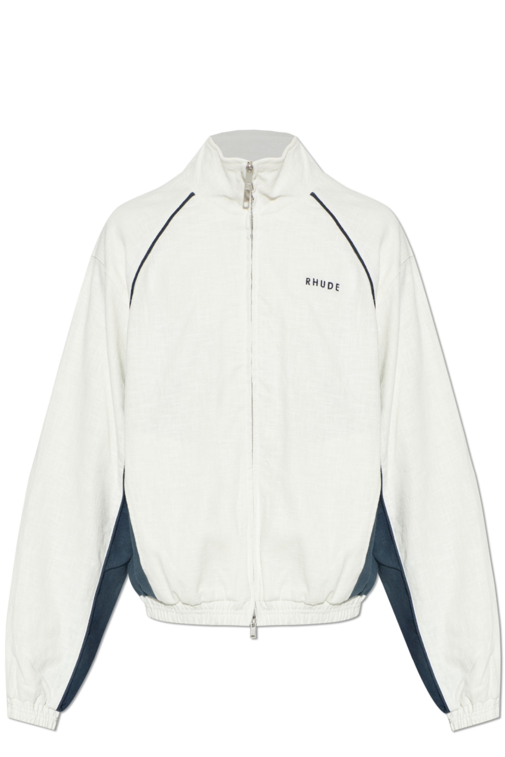 Льняной жакет от Rhude — это современная интерпретация бомбера, в которой спортивная форма соединяется с утончённой минималистичной эстетикой.