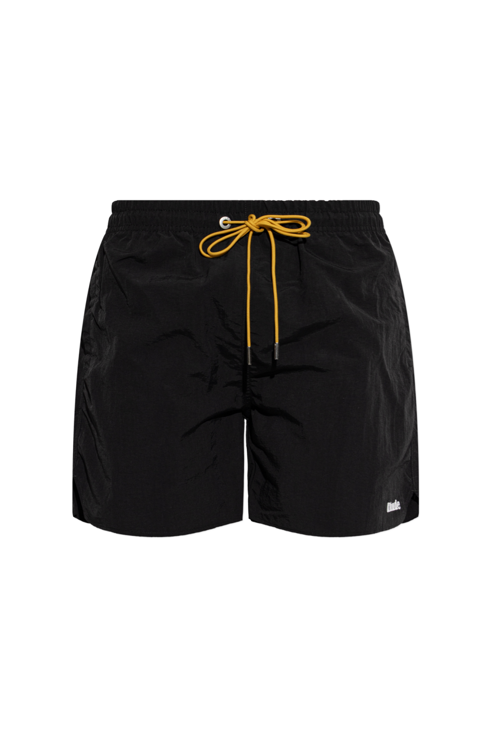 Тщательно продуманный эластичный пояс с кулиской и контрастной ярко-желтой кулиской придают шортам уникальный вид и позволяют точно отрегулировать посадку. Отсутствие больших карманов и аскетичных линий подчеркивает изысканную эстетику дизайна, а сдержанный белый логотип «Rhude» на левой штанине свидетельствует о престижном происхождении этих шорт.