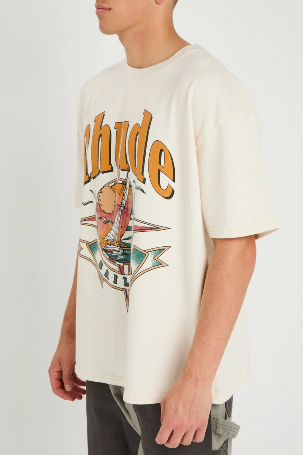 Футболка из хлопка Rhude Port De Rhude в чистом белом оттенке отражает фирменную эстетику бренда, в которой перекликаются мотивы путешествий, курортной культуры и городской расслабленности. Дизайнерский принт на груди выступает центральным акцентом, задавая образу легкое настроение побережья и визуально расширяя границы повседневного гардероба.