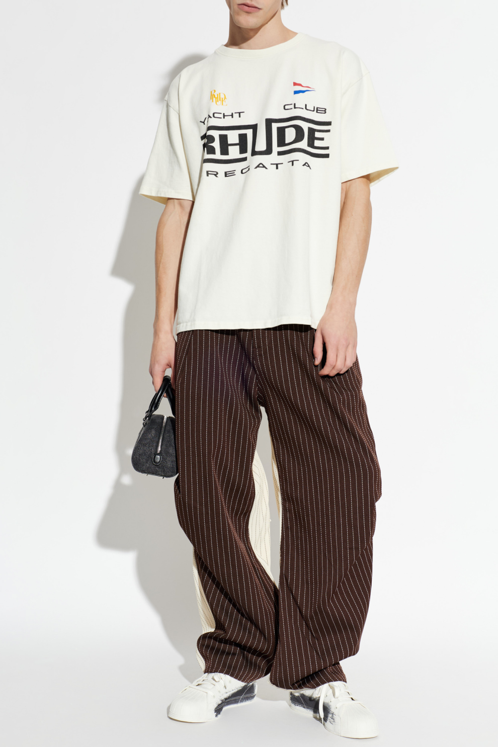 Изготовленная из мягкого высококачественного хлопка, эта вещь впечатляет приятной текстурой и удобным кроем. Центральная, крупная черная надпись «RHUDE» и более мелкие надписи «REGATTA» и «YACHT CLUB», дополненные красочным графическим мотивом, придают всему изделию неповторимый, роскошный характер. Это предложение для ценителей утонченной простоты и авангардной элегантности.