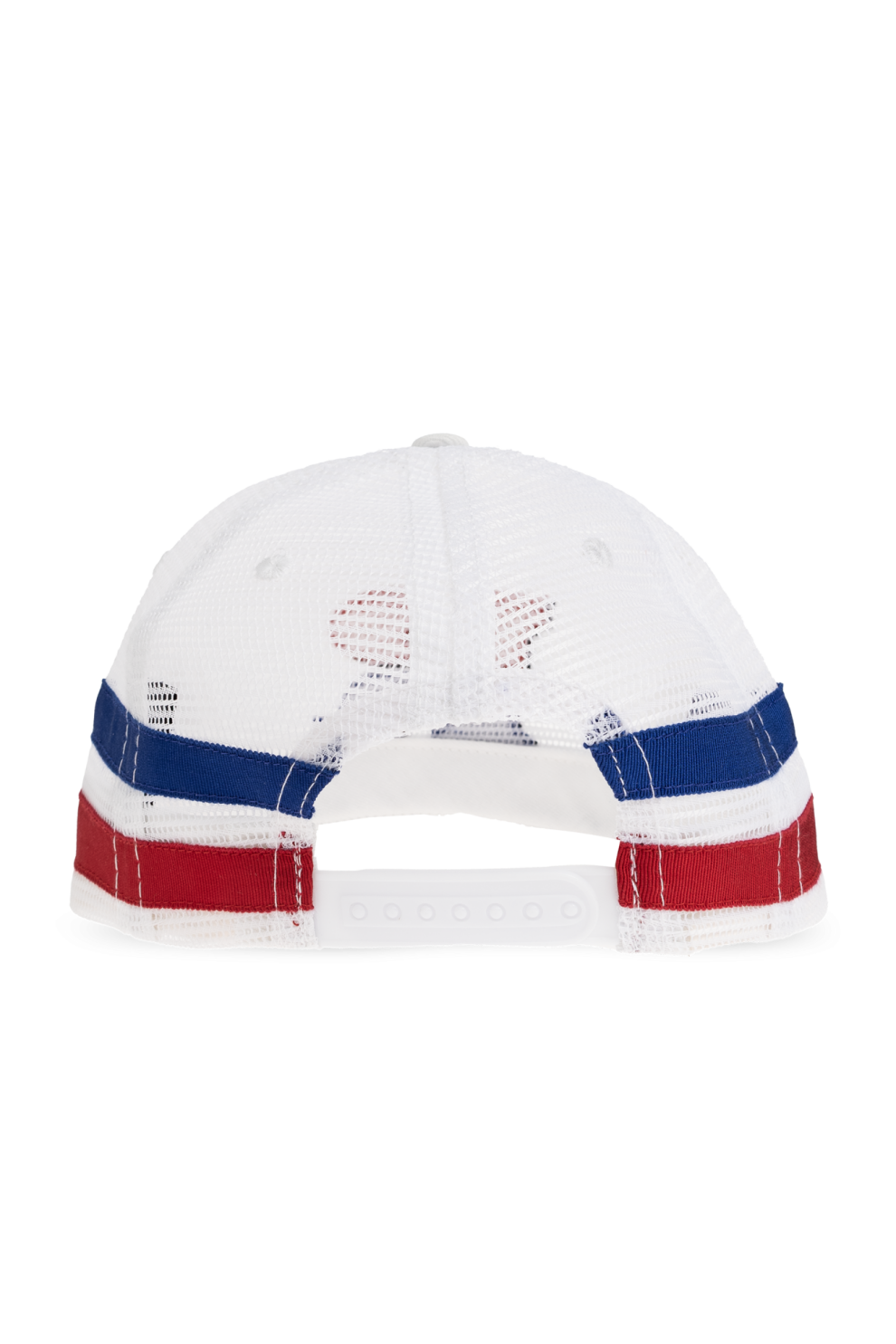 Классический дизайн отличается крупной, тщательно вышитой надписью «RHUDE» на передней части и искусно выполненной буквой «R» в оттенках красного и синего. Декоративный выступ с двойной линией, создающей изящный контур, подчеркивает эксклюзивный характер изделия.