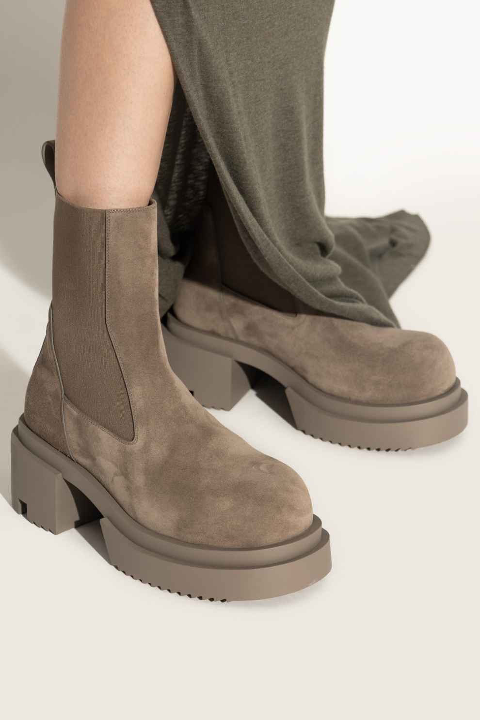 Ботинки-челси Beatle Bogun из коллекции FW25 от Rick Owens – изысканная пара, покоряющая своей утончённой элегантностью и выразительным, скульптурным характером.