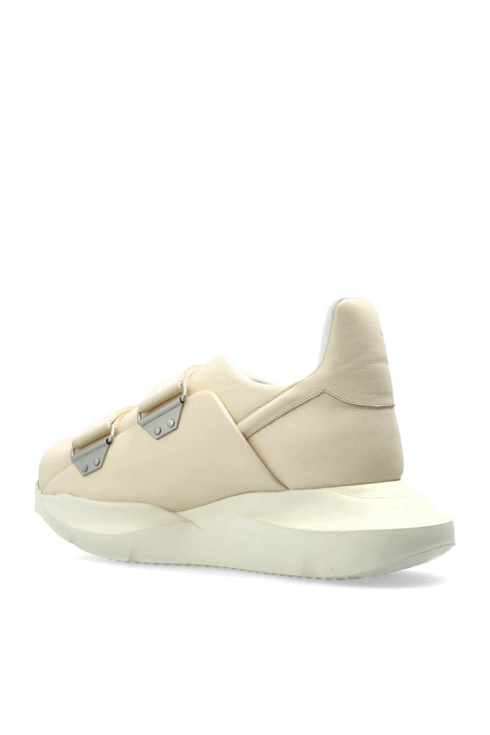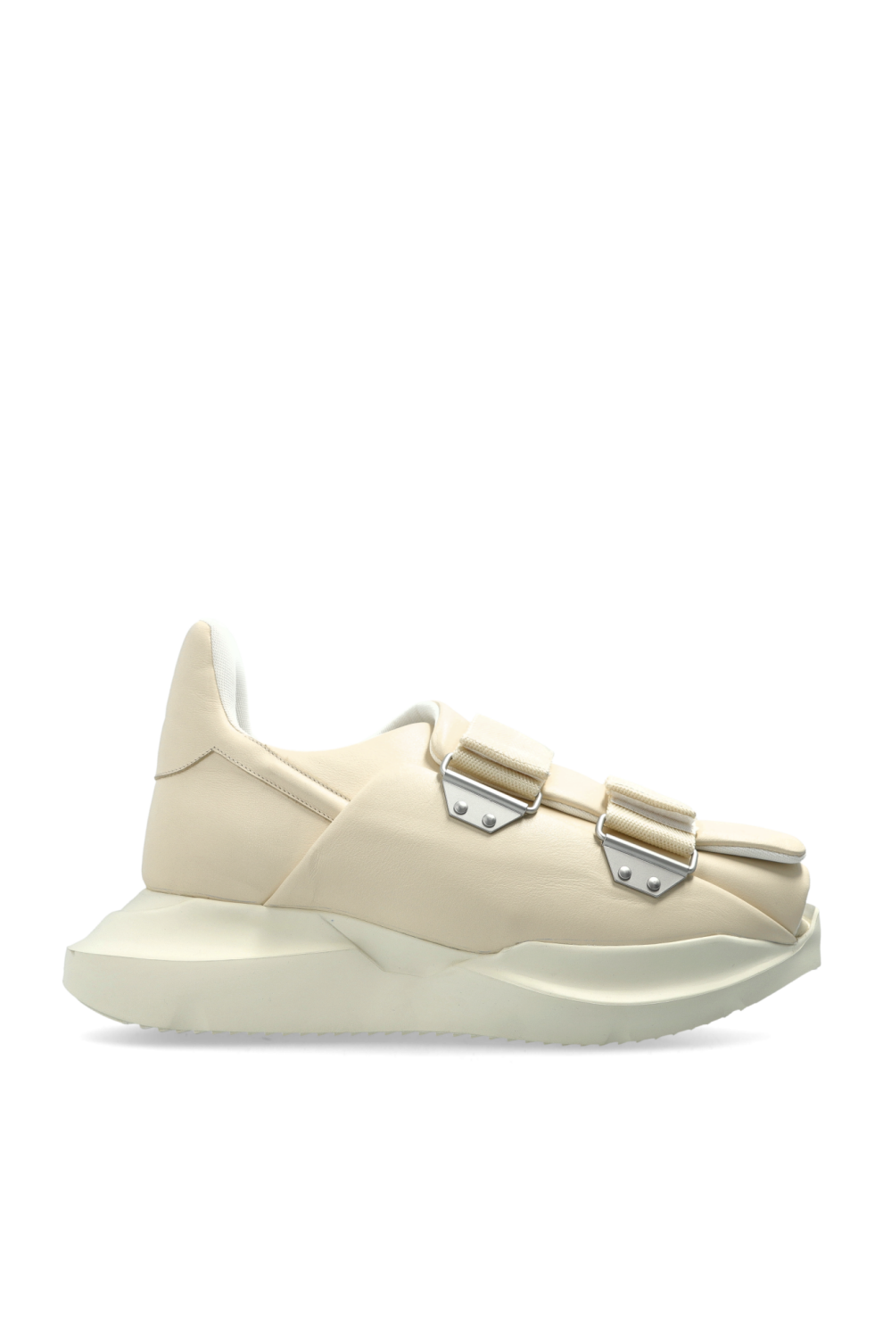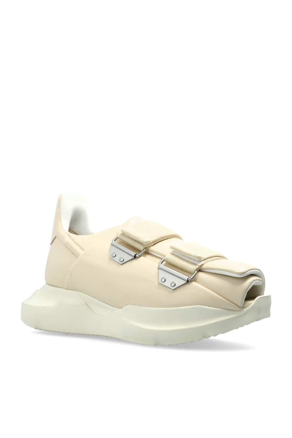 Кроссовки «Burritoghet» от Rick Owens — это воплощение современного авангарда, гармонично сочетающее массивный силуэт с кремовым оттенком, подчеркивающим их универсальную элегантность. Контурный верх, выполненный из высококачественной кожи, мягко облегает стопу до щиколотки, а открытый перед демонстрирует современный подход к стилю спортивных сандалий.