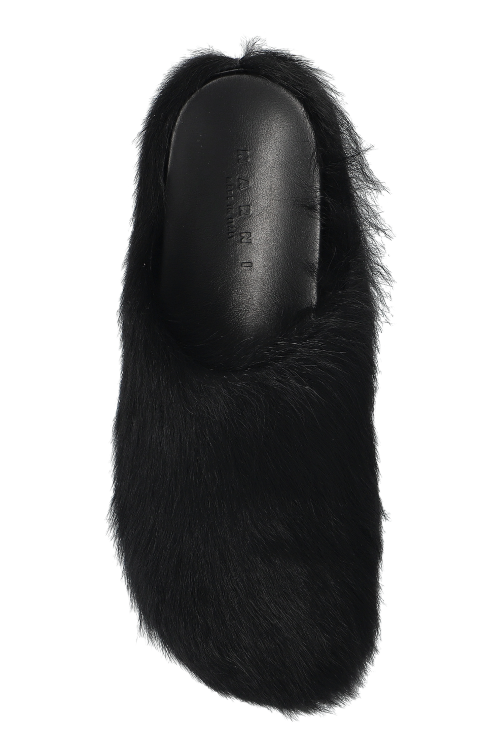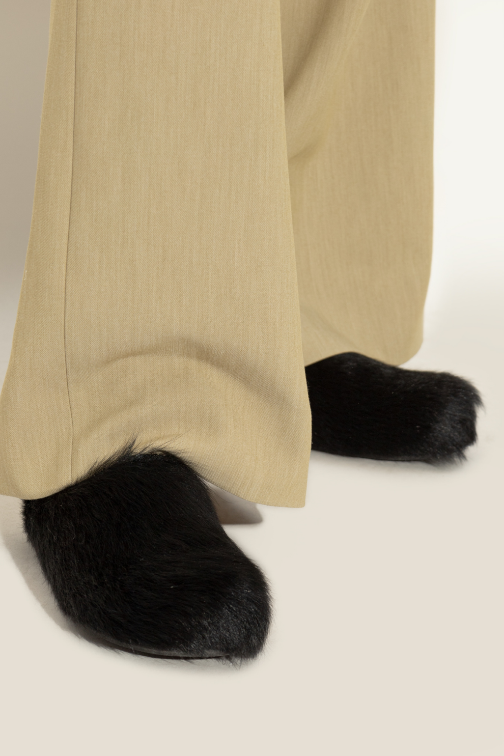 Верх выполнен из длинноворсовой телячьей шерсти глубокого чёрного оттенка — густой, мягкой и визуально объёмной. Текстура создаёт ощущение тактильной роскоши и добавляет образу загадочной элегантности. Внутренняя отделка из мягкой телячьей кожи дарит абсолютный комфорт, а ребристая резиновая подошва обеспечивает устойчивость и лёгкий контраст, сохраняя гармонию пропорций.