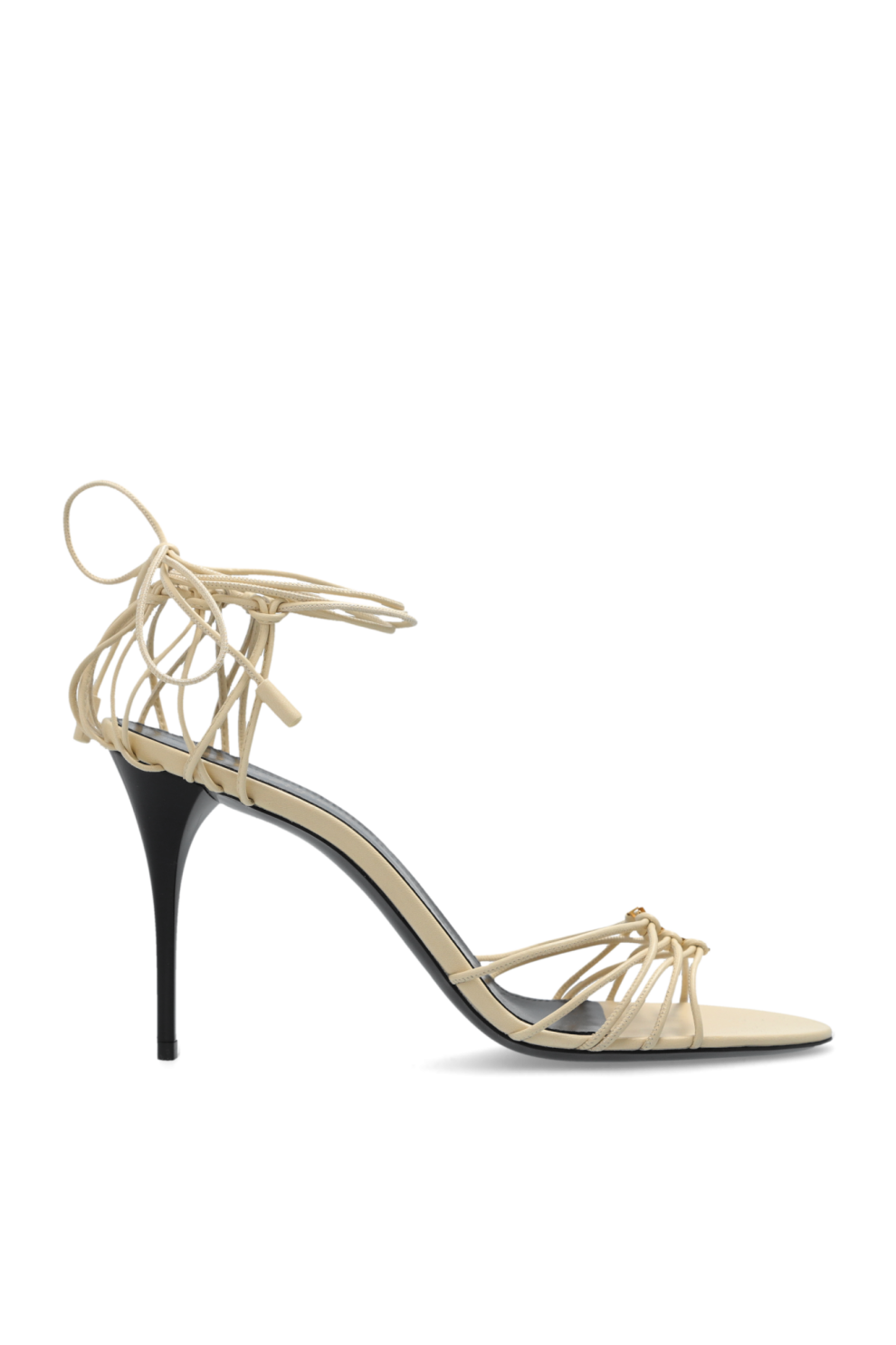 Изысканные бежевые босоножки Babylone от Saint Laurent излучают лёгкость, утончённость и современную элегантность. Мягкая овчина премиального качества гармонично обрамляет стопу, а тонкие ремешки, переплетённые спереди и обвивающие щиколотку, создают изящный силуэт. Свободные концы ремешков позволяют идеально подогнать обувь по ноге, добавляя образу лёгкость и грацию.