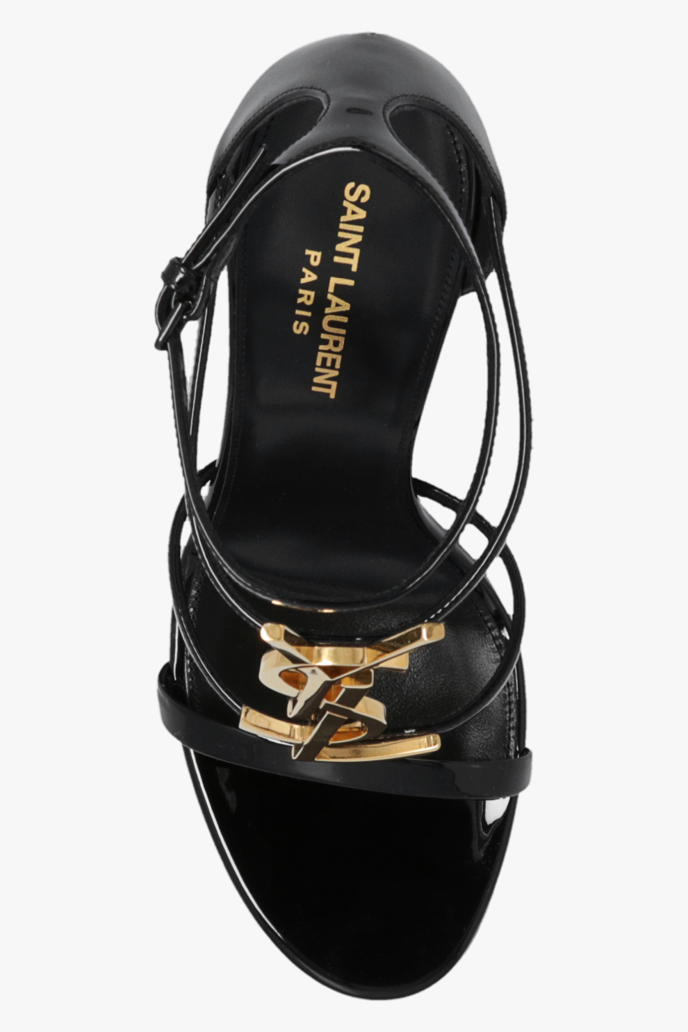Элегантные босоножки Saint Laurent Cassandra в классическом чёрном цвете — идеальное сочетание французской роскоши и современного шика. Верх выполнен из лакированной телячьей кожи премиального качества, придающей обуви благородный блеск и утончённый характер.