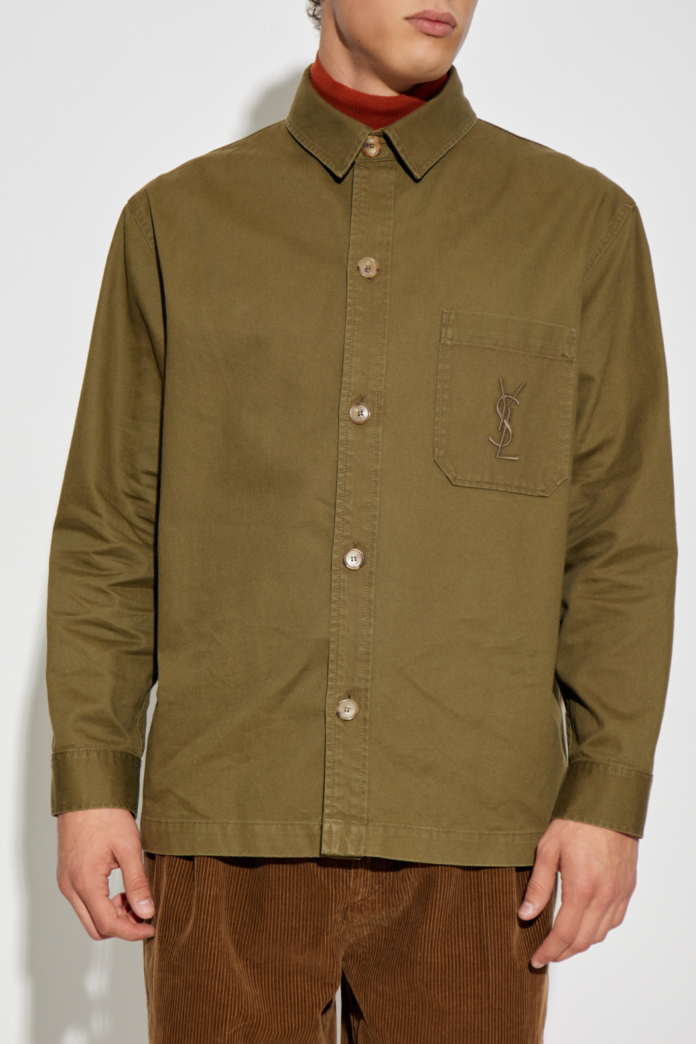 Рубашка с логотипом Saint Laurent очаровывает своим вневременным минимализмом, выраженным в классическом прямом крое с лёгкими линиями. Модель отличается однотонной цветовой гаммой, прямым воротником и манжетами с пуговицами, а также ярким вышитым логотипом YSL на левом переднем кармане. Монохромный брендинг тонко подчёркивает роскошный характер этой модели.