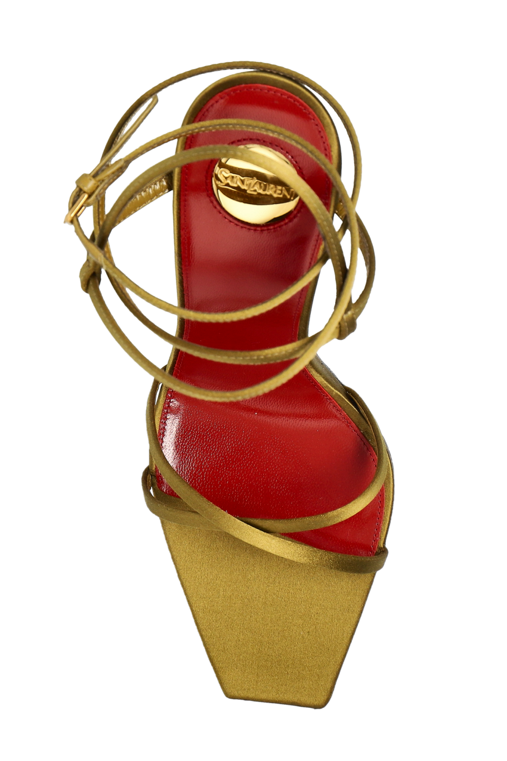 - Иконический каблук с монограммой «YSL» — символ роскоши и эксклюзивности.
