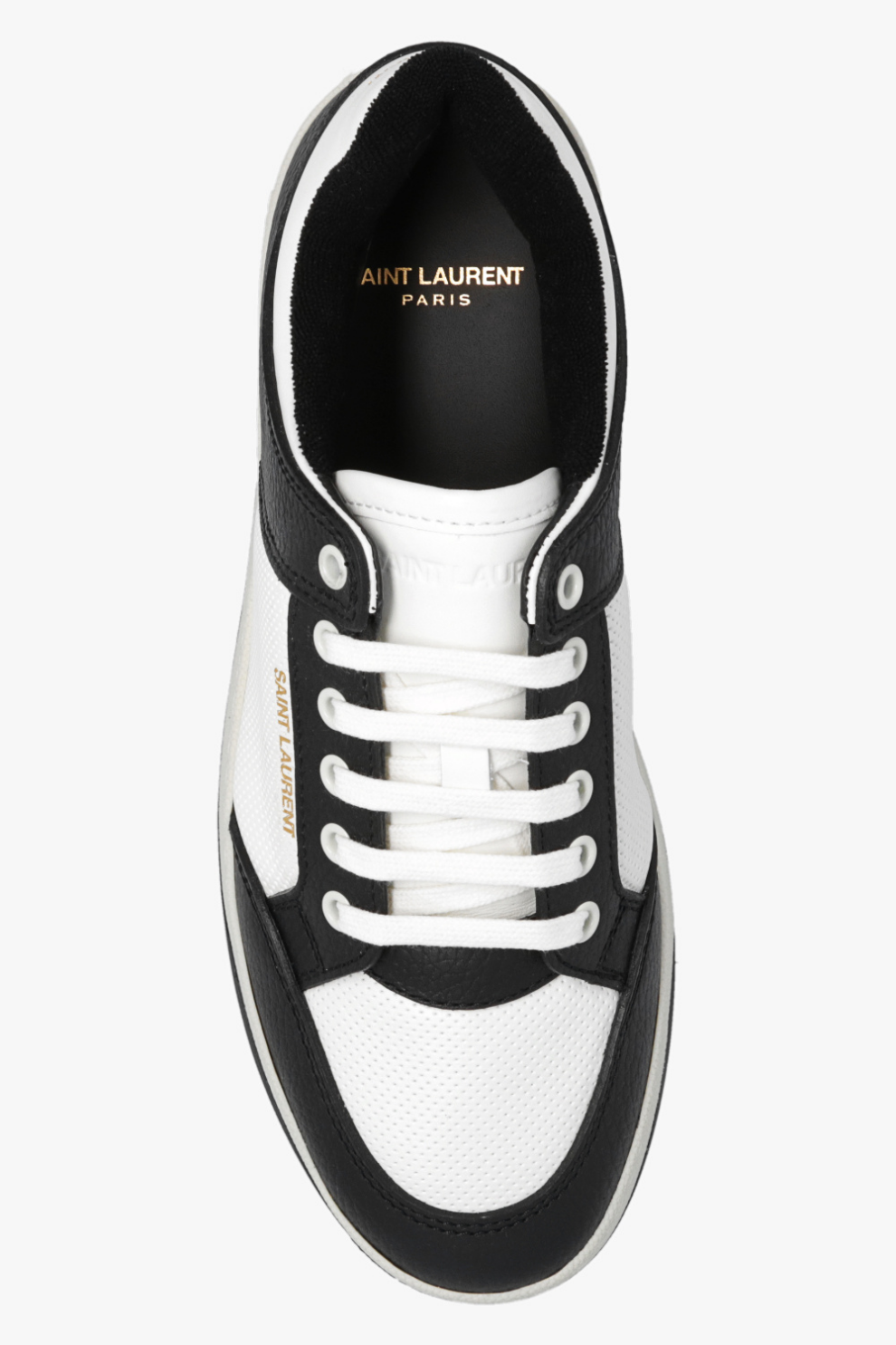 Декоративная перфорация на мыске и боковых панелях придаёт модели лёгкость и динамику, а тиснёный золотистый логотип Saint Laurent добавляет утончённый акцент и подчёркивает престиж бренда. Контрастная резиновая подошва в оттенках чёрного и кремового создаёт гармоничное завершение силуэта и обеспечивает стабильность при движении.