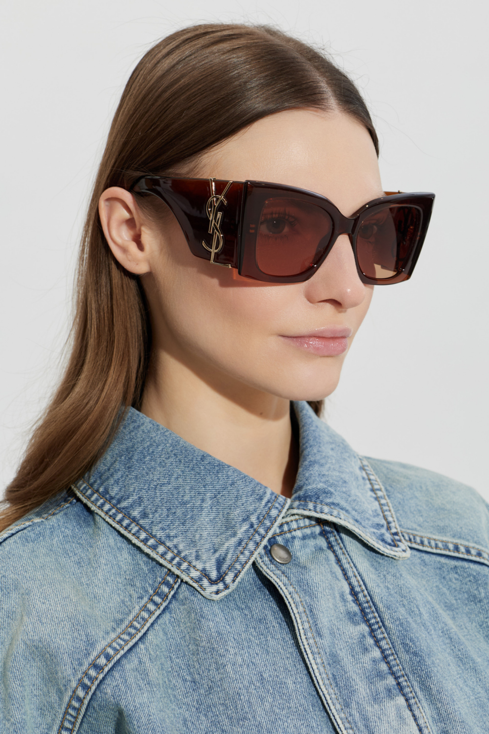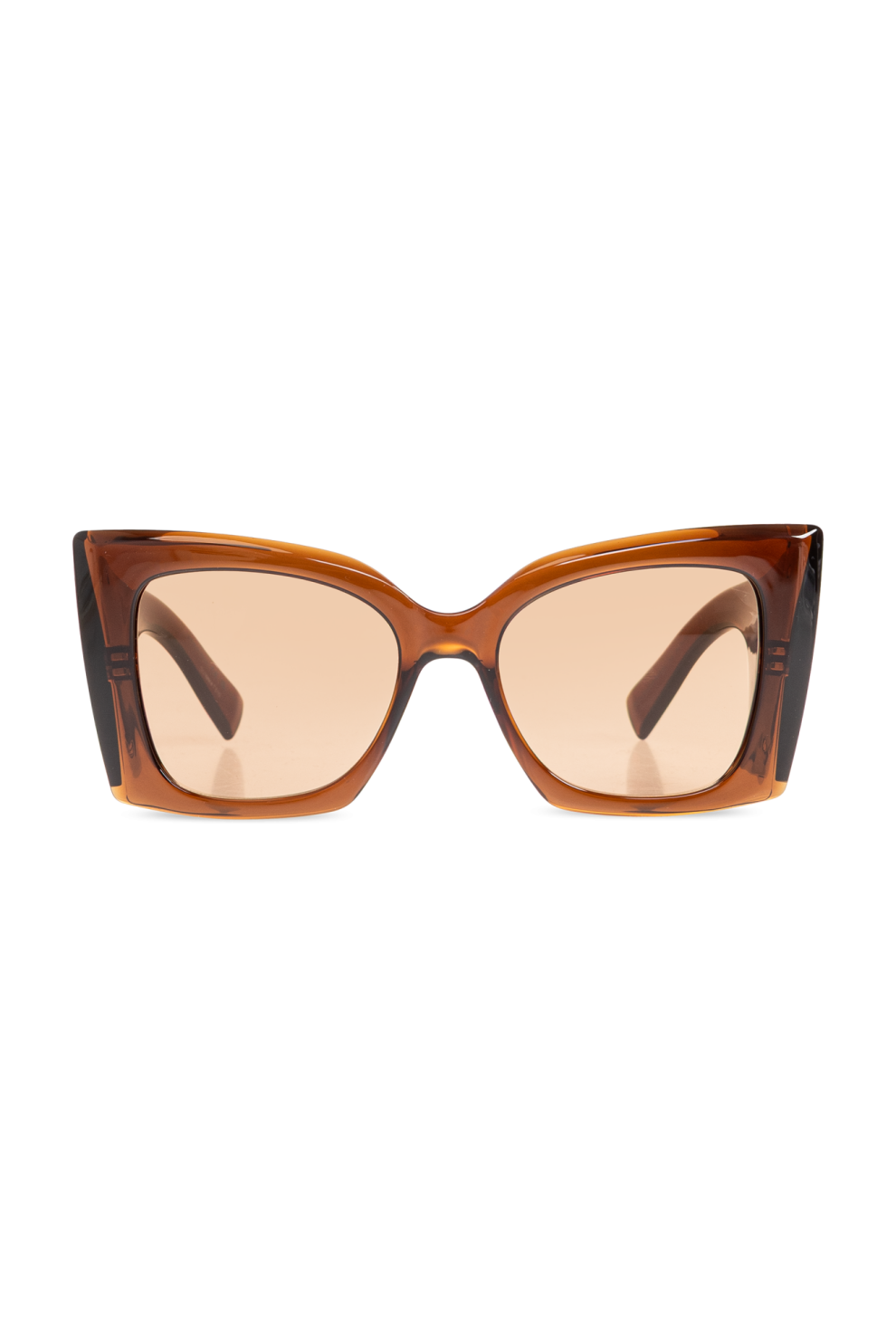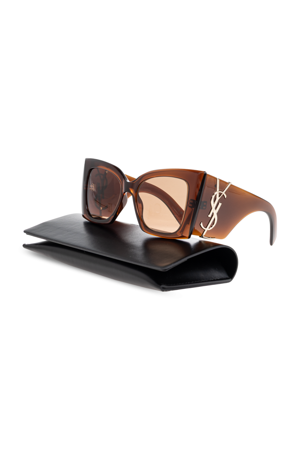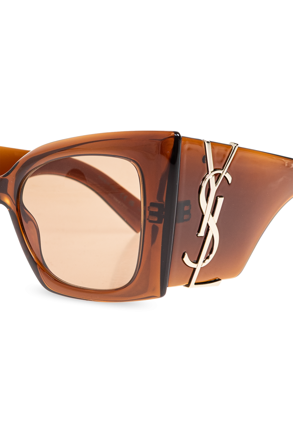 Широкие прямоугольные линзы с плавно закругленными углами дополняют гладкую монохромную оправу. Их уникальный характер подчеркивает золотая монограмма «YSL» по внешнему краю, символ эксклюзивности и мастерства Saint Laurent.