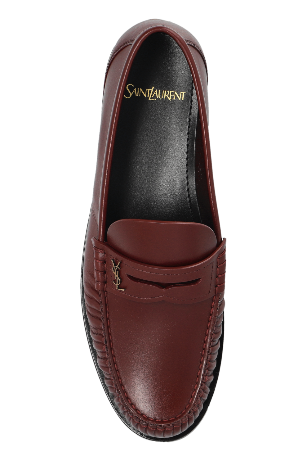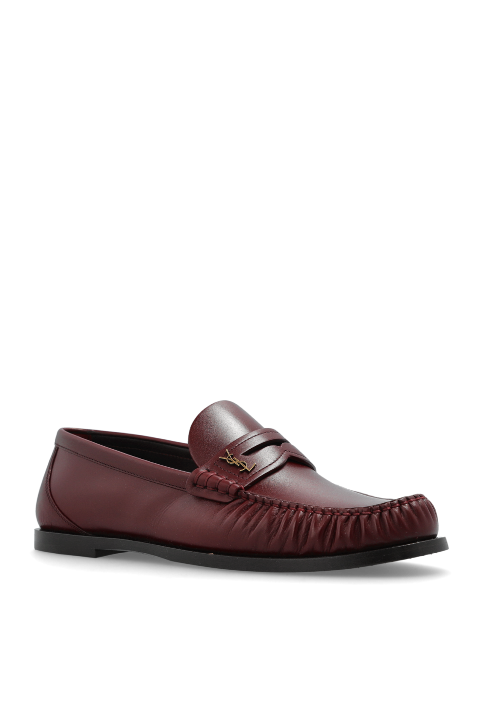 Идеально сбалансированные пропорции дополняют ручные сборки на союзке, придающие модели мягкость линий и характерное изящество ремесленного исполнения. Декоративная перемычка в духе классических пенни-лоферов украшена фирменным золотистым логотипом Saint Laurent, подчеркивающим происхождение обуви из мира высокой моды.