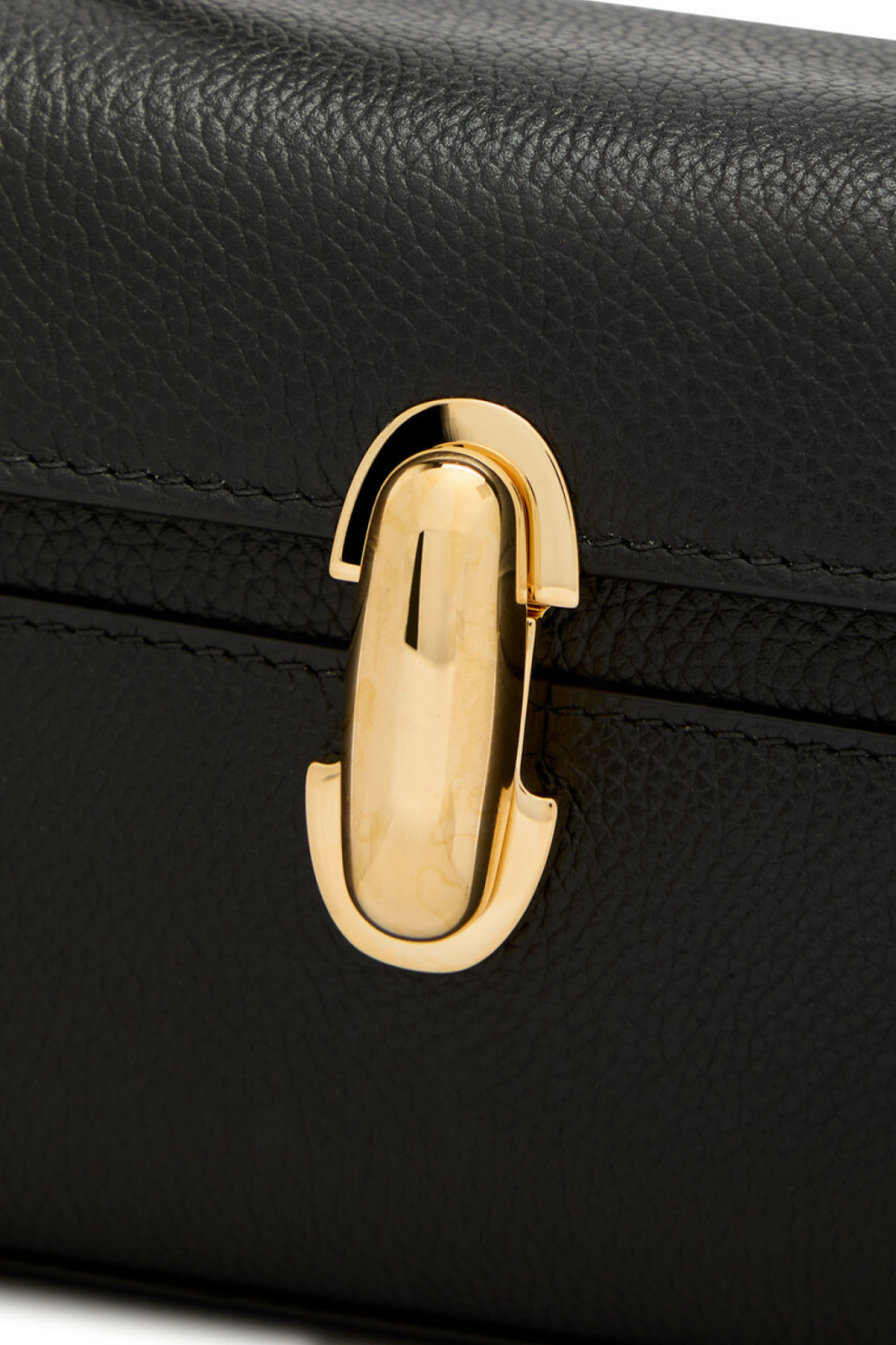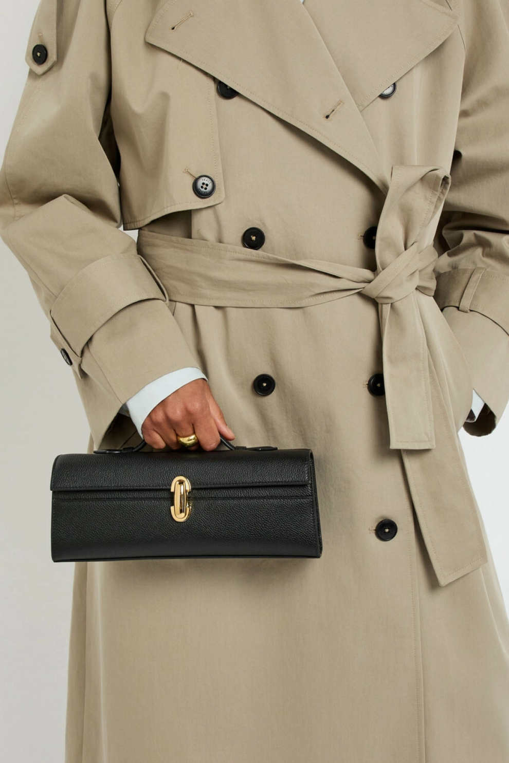 Культовая эстетика Savette раскрывается в модели Symmetry Slim Pochette — утончённой, скульптурной и выполненной из премиальной зернистой кожи глубокого чёрного оттенка. Эта сумка создана как современный арт-объект, в котором каждая деталь подчинена идее гармонии, симметрии и утончённой простоты. Структурированный корпус подчеркивает фирменный архитектурный язык бренда: чистые линии, идеальные пропорции и ощущение тщательно продуманного минимализма. Зернистая кожа добавляет тактильной роскоши, усиливая глубину цвета и подчёркивая чёткий силуэт.