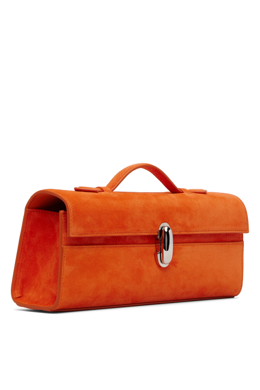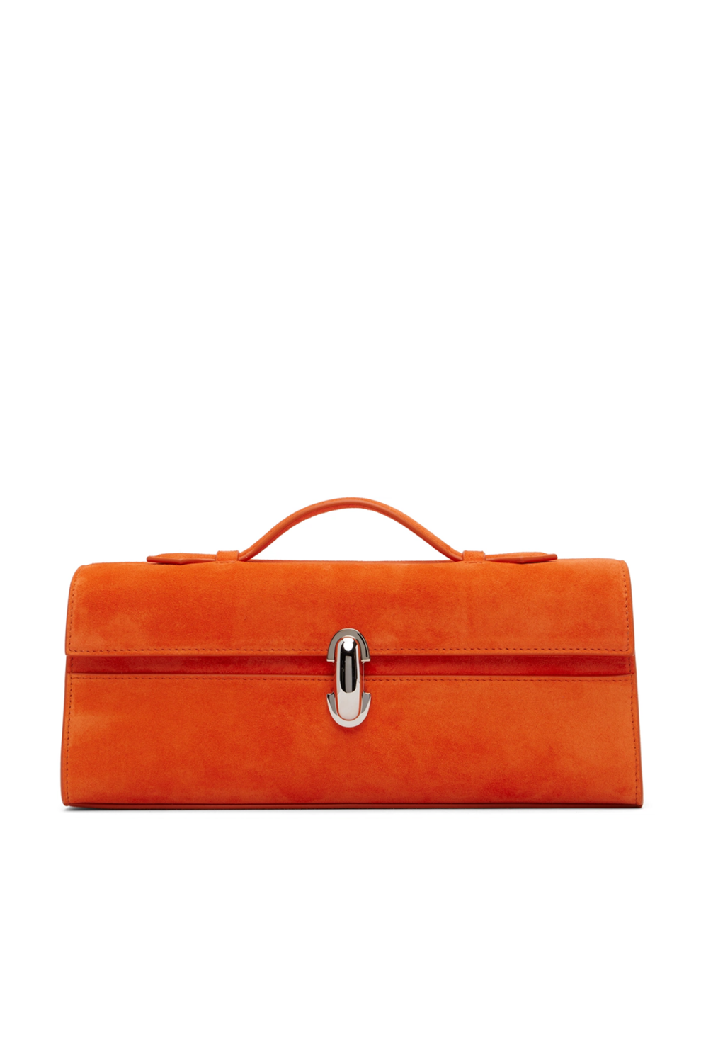 Сумка Savette Slim Symmetry — это яркая интерпретация фирменной архитектурной эстетики бренда, сочетающая скульптурную точность линий и бархатистую фактуру замши. Выполненная из мягкой телячьей замши в насыщенном оранжевом оттенке Tangerine, она становится выразительным акцентом в образе, сохраняя при этом характерную для Savette спокойную, интеллектуальную роскошь.