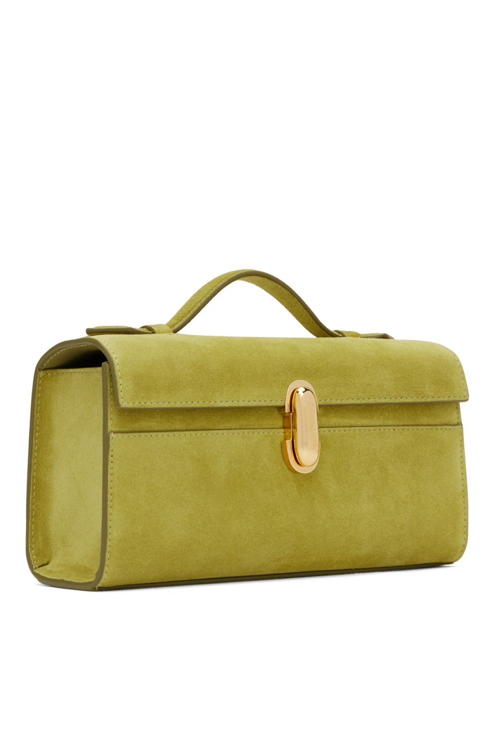 Эта изысканная Pochette Bag из коллекции Symmetry от Savette выполнена из мягкой замшевой телячьей кожи насыщенного зелёного цвета (Chartreuse), сочетая в себе современную элегантность и функциональный минимализм.