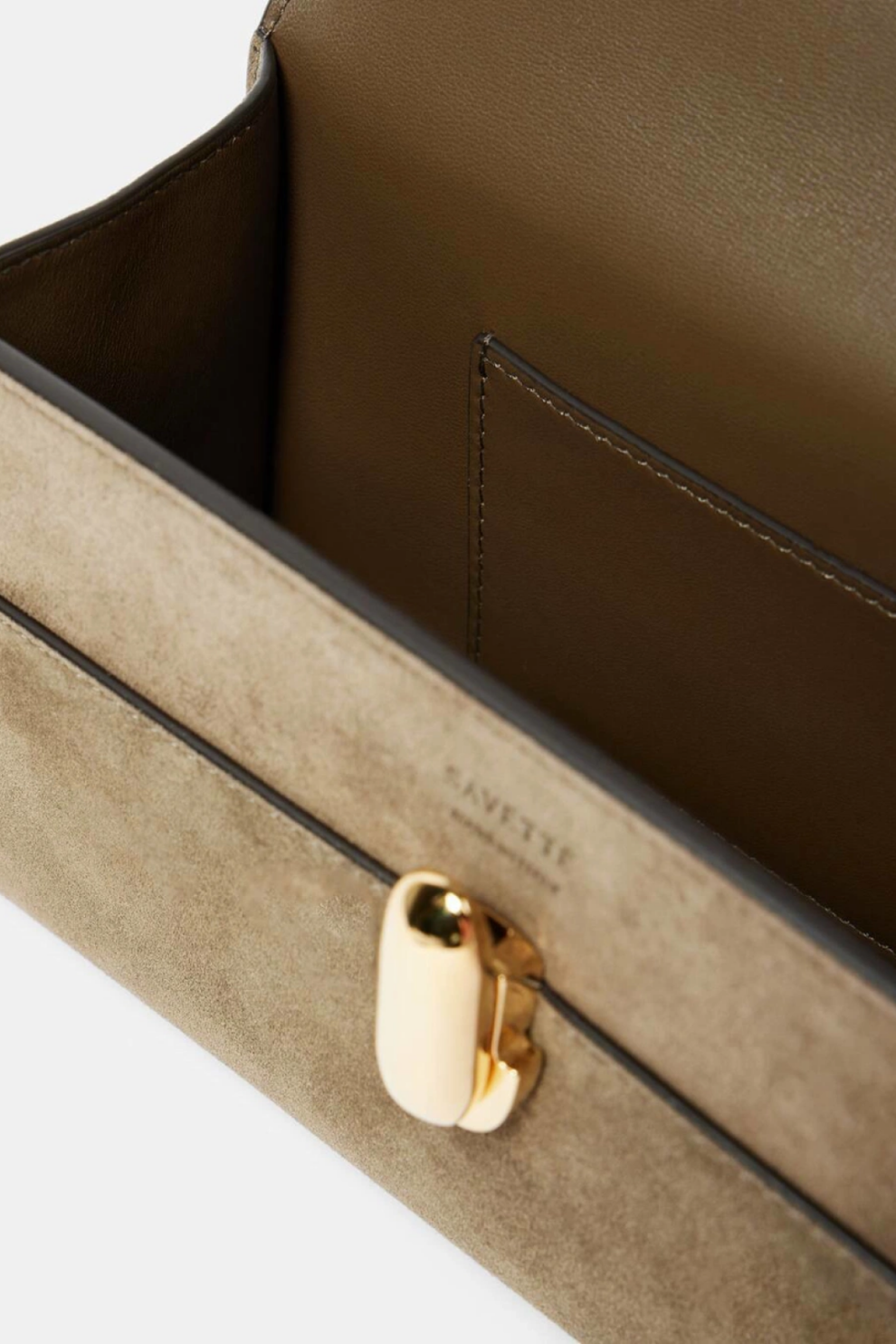 Элегантная и утончённая Symmetry Pochette Bag в оттенке Mink воплощает эстетический код Savette — симметрию, гармонию форм и ощущение современного спокойного люкса. Выполненная из бархатистой телячьей замши, сумка отличается лаконичным силуэтом и идеальной архитектурой линий. Компактный формат подчёркивается жёсткой конструкцией, а фирменный клапан с поворотной застёжкой делает модель одновременно функциональной и изысканной.