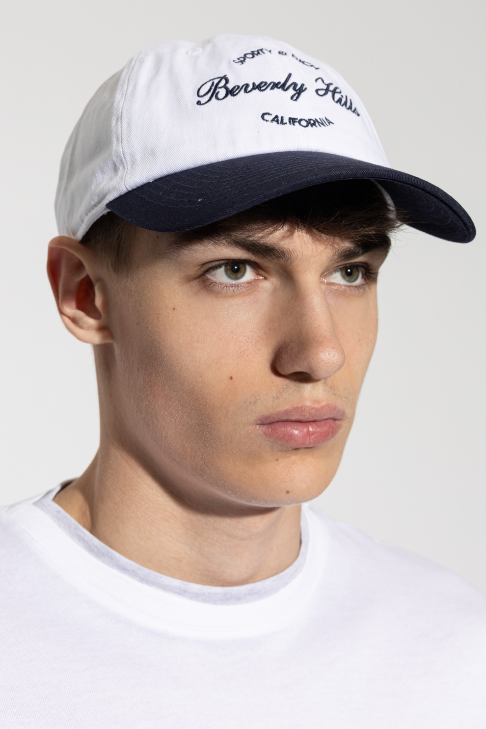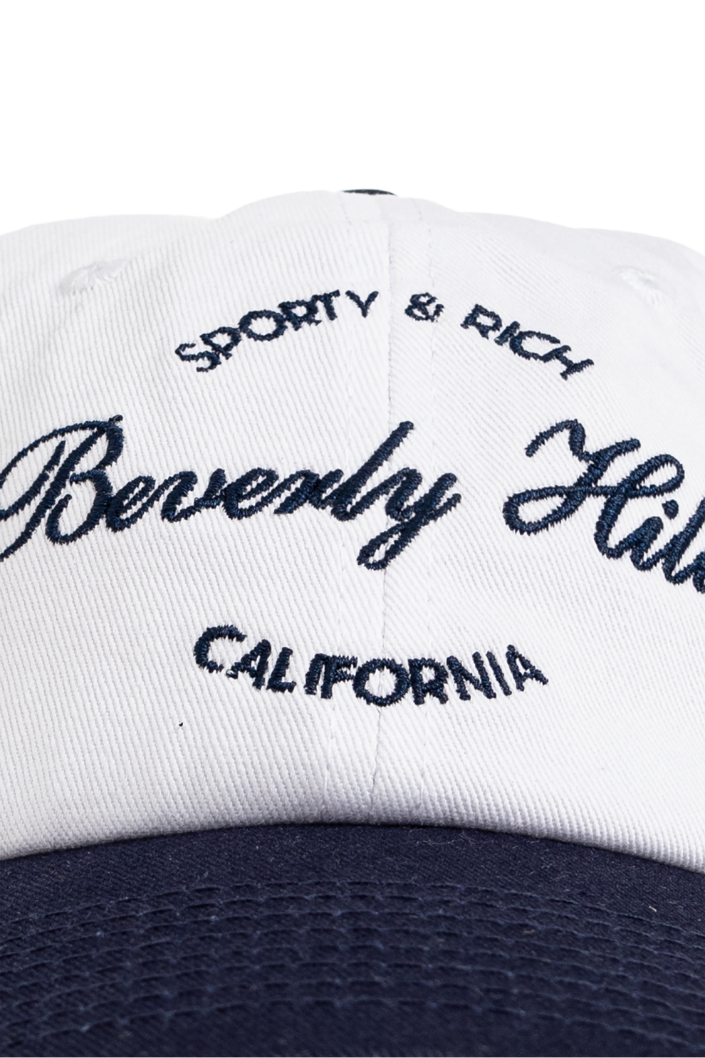 Изготовленная из высококачественного хлопка, эта кепка отличается воздухопроницаемостью и комфортом. Гладкая, однородная структура ткани подчеркивает эксклюзивный характер изделия. Вышитая по центру надпись «Sporty & Rich Beverly Hills California» темно-синего цвета придает ей престижный вид и отражает калифорнийский образ жизни. Классическая регулируемая металлическая застежка обеспечивает идеальную посадку.