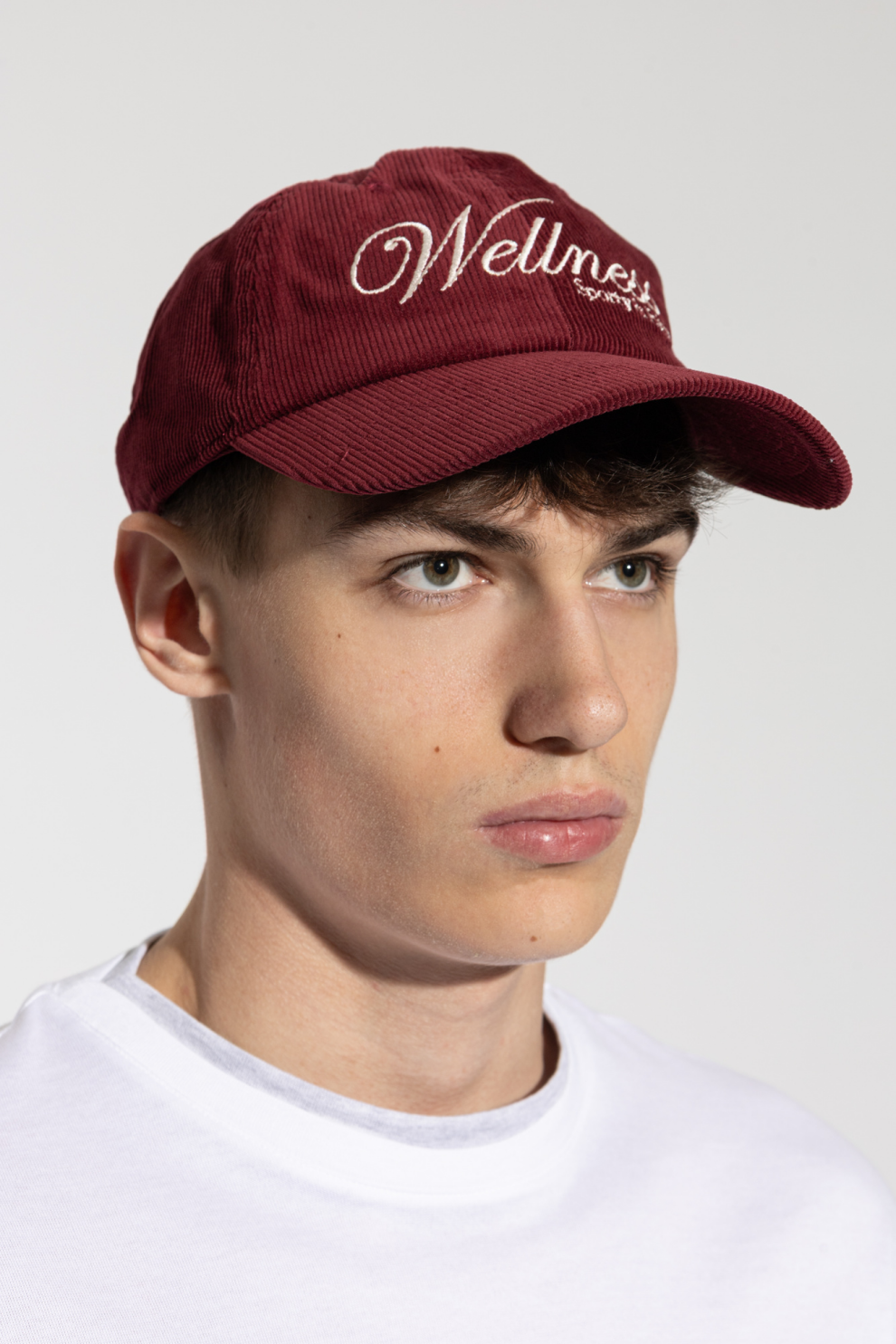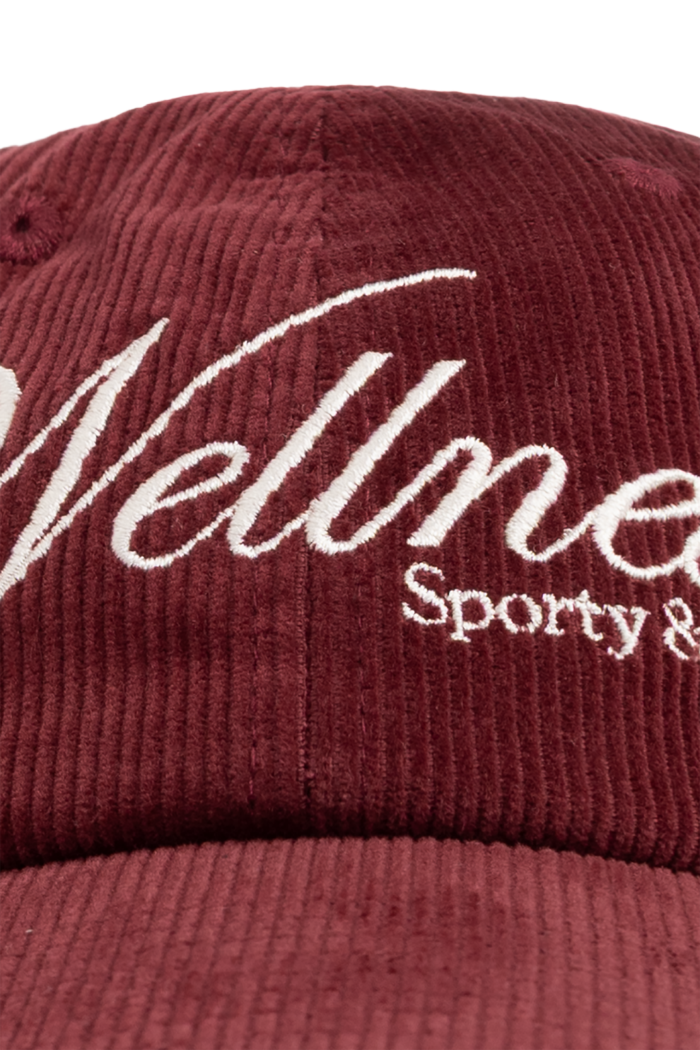 Классическая форма с шестью изысканными панелями и умеренно изогнутым козырьком обеспечивает комфорт и универсальность. Бордовый оттенок кепки гармонирует с контрастной, богато вышитой надписью «Wellness» и меньшей надписью «Sporty & Rich», расположенными по центру передней части. Точная регулировка окружности с помощью металлической пряжки гарантирует индивидуальную посадку и комфорт.