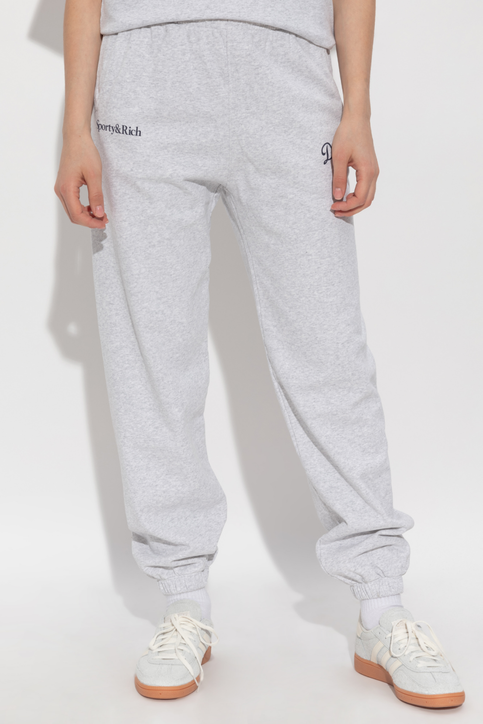 Дополнительные акценты — логотип «Dodgers» и символ «LA» бейсбольного клуба на левой штанине, а также надпись «Sporty & Rich» черного цвета на правой стороне, что придает дизайну уникальную эстетическую ценность.