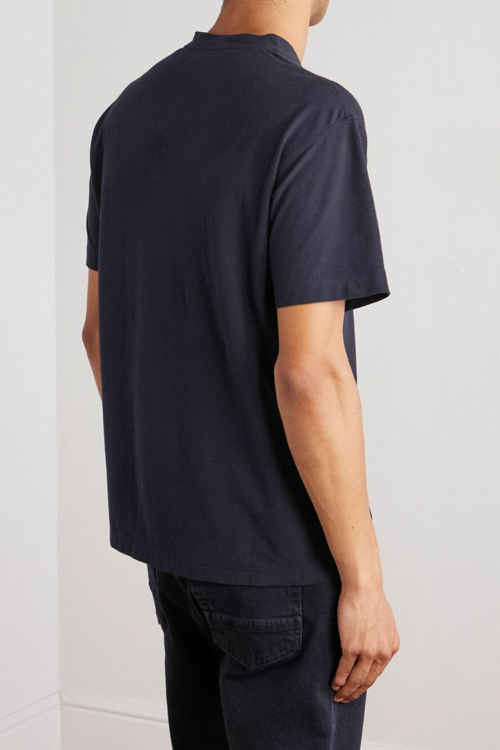 Модель выполнена из мягкого и дышащего хлопкового джерси премиального качества. Материал обладает исключительной комфортностью, лёгкостью и стойкостью к ежедневной носке. Стандартный прямой крой обеспечивает идеальную посадку, подчёркивая чистоту линий и современную геометрию силуэта.