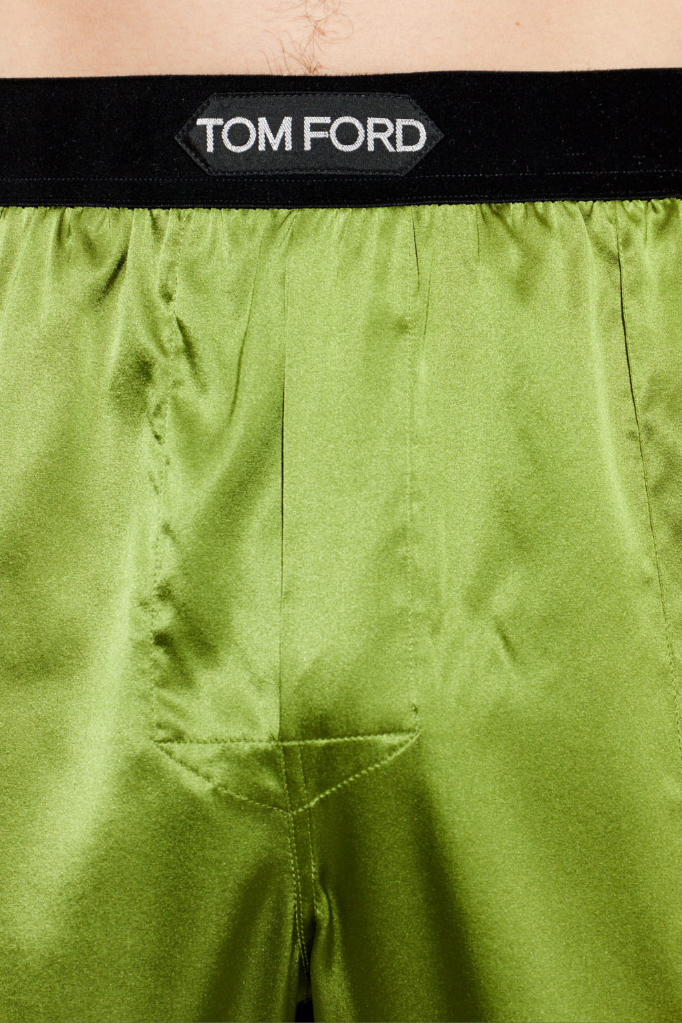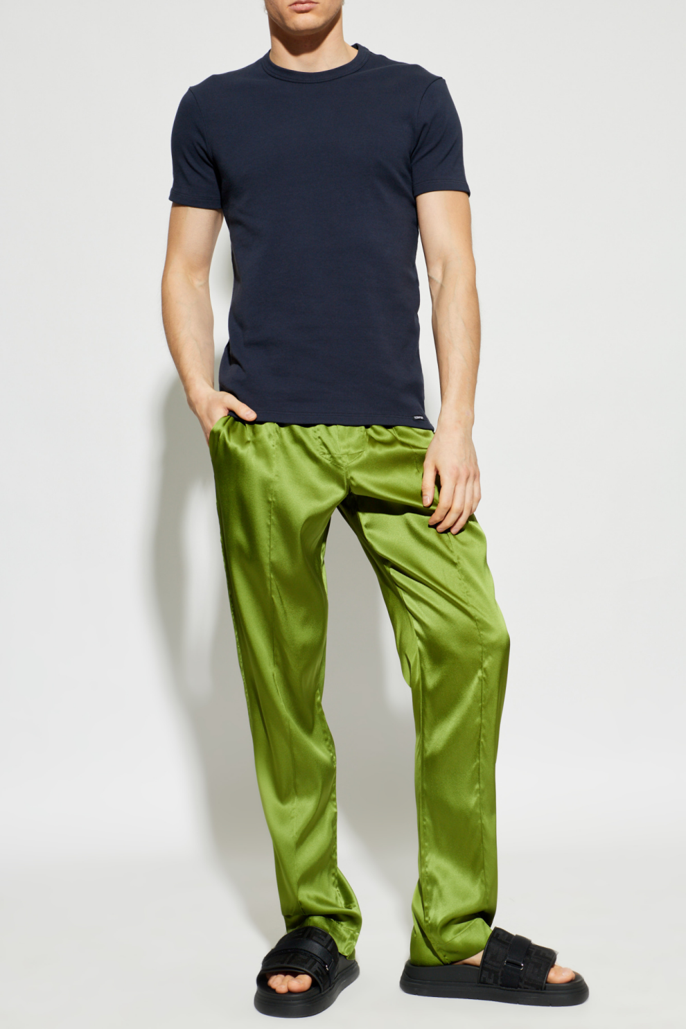 Эта модель, выполненная из высококачественного, переливающегося сатинового атласа, очаровывает своей неповторимой мягкостью и легкостью, которые деликатно облегают силуэт. Эластичный пояс, украшенный эффектным логотипом дизайнера, является символом роскоши Tom Ford. Боковые карманы и элегантные прямые штанины гарантируют комфорт и исключительную изысканность.