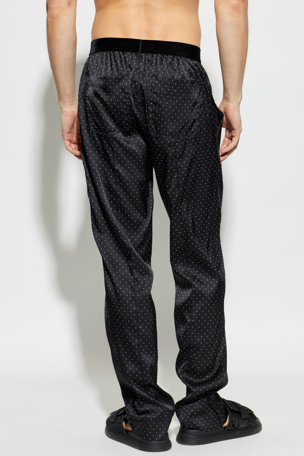 Атласные пижамные штаны от Tom Ford в горошек — это воплощение утонченной элегантности и вневременной роскоши. Изготовленные из гладкого, переливающегося сатина с добавлением эластана, они обладают классическим прямым кроем и полной длиной, обеспечивая непревзойденный комфорт.