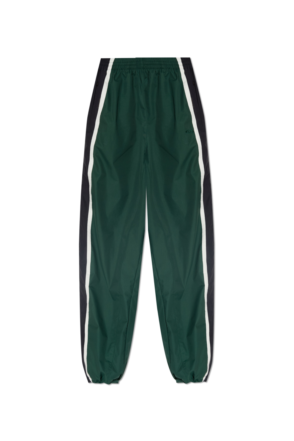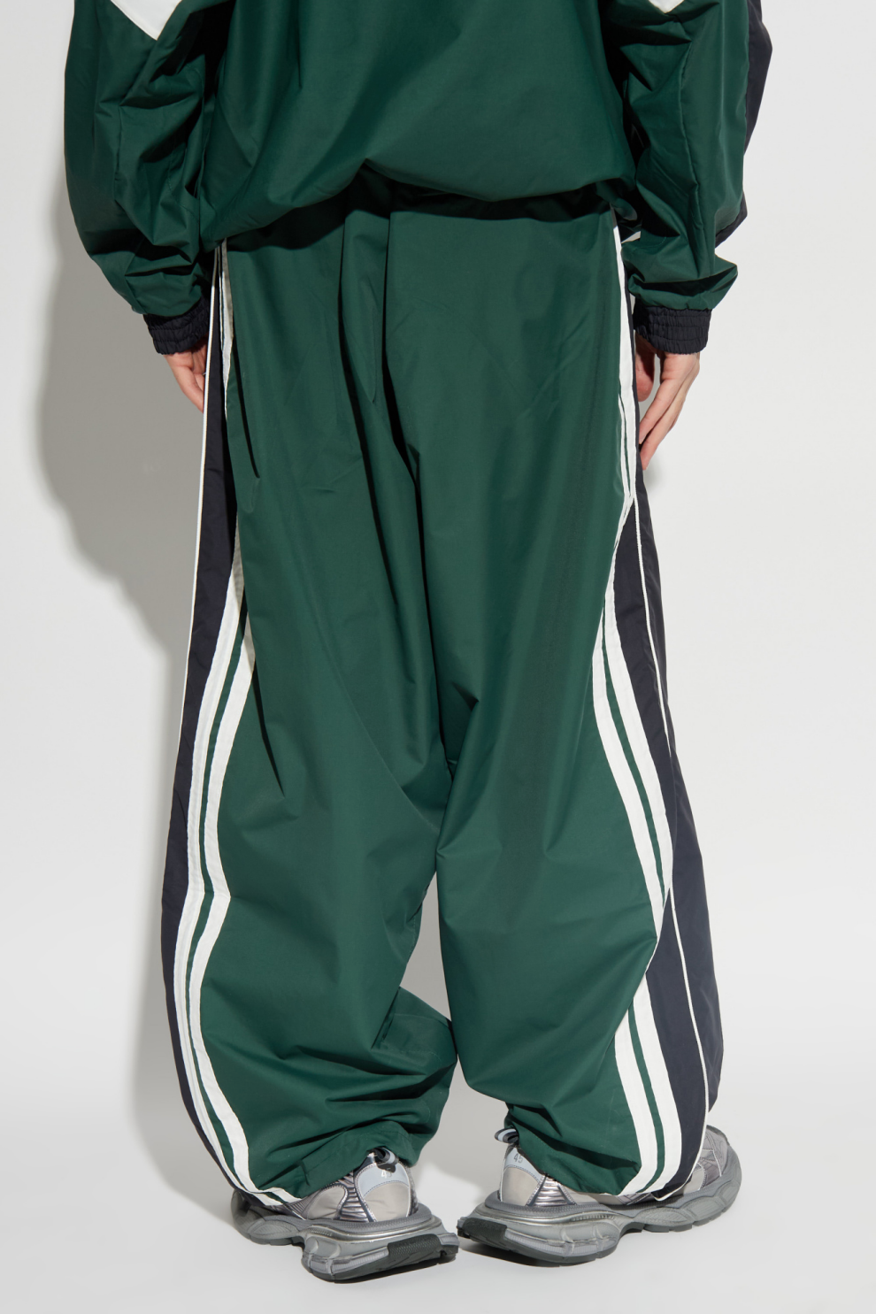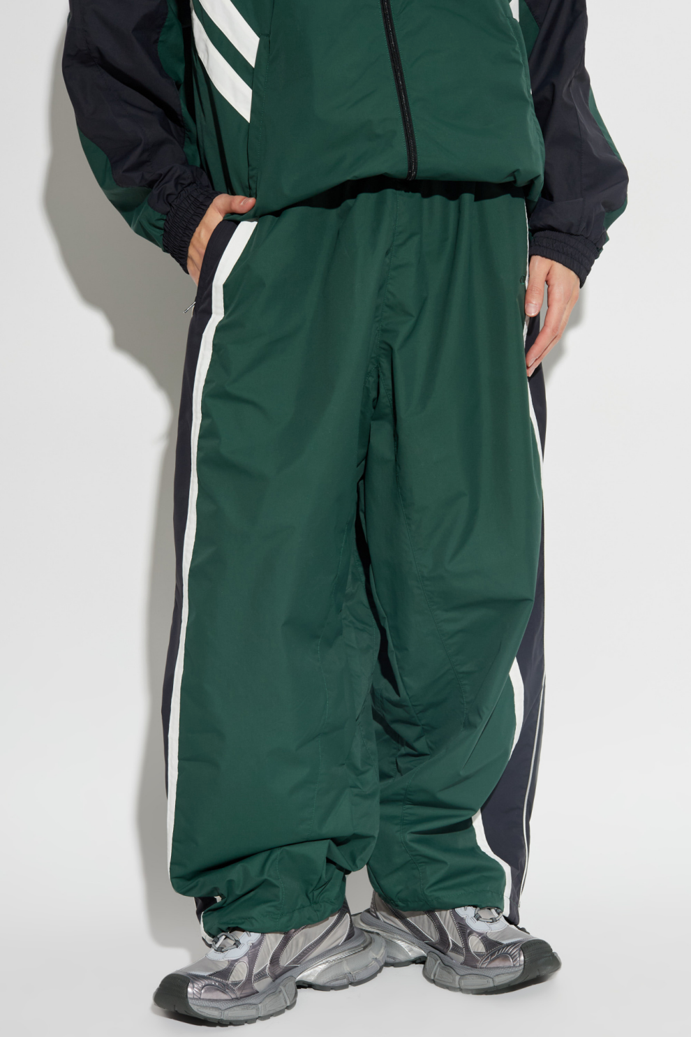 Спортивные штаны Vetements воплощают утончённую интерпретацию уличной эстетики 90-х, переосмысленную через призму высокой моды. Их свободный крой со слегка зауженными брючинами создаёт динамичный силуэт, подчёркивая непринуждённый, но уверенный характер изделия.