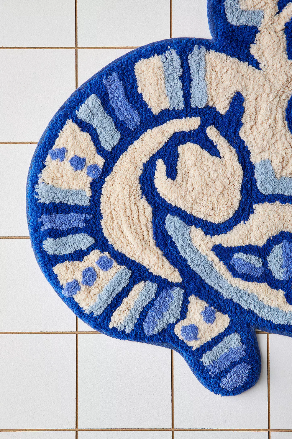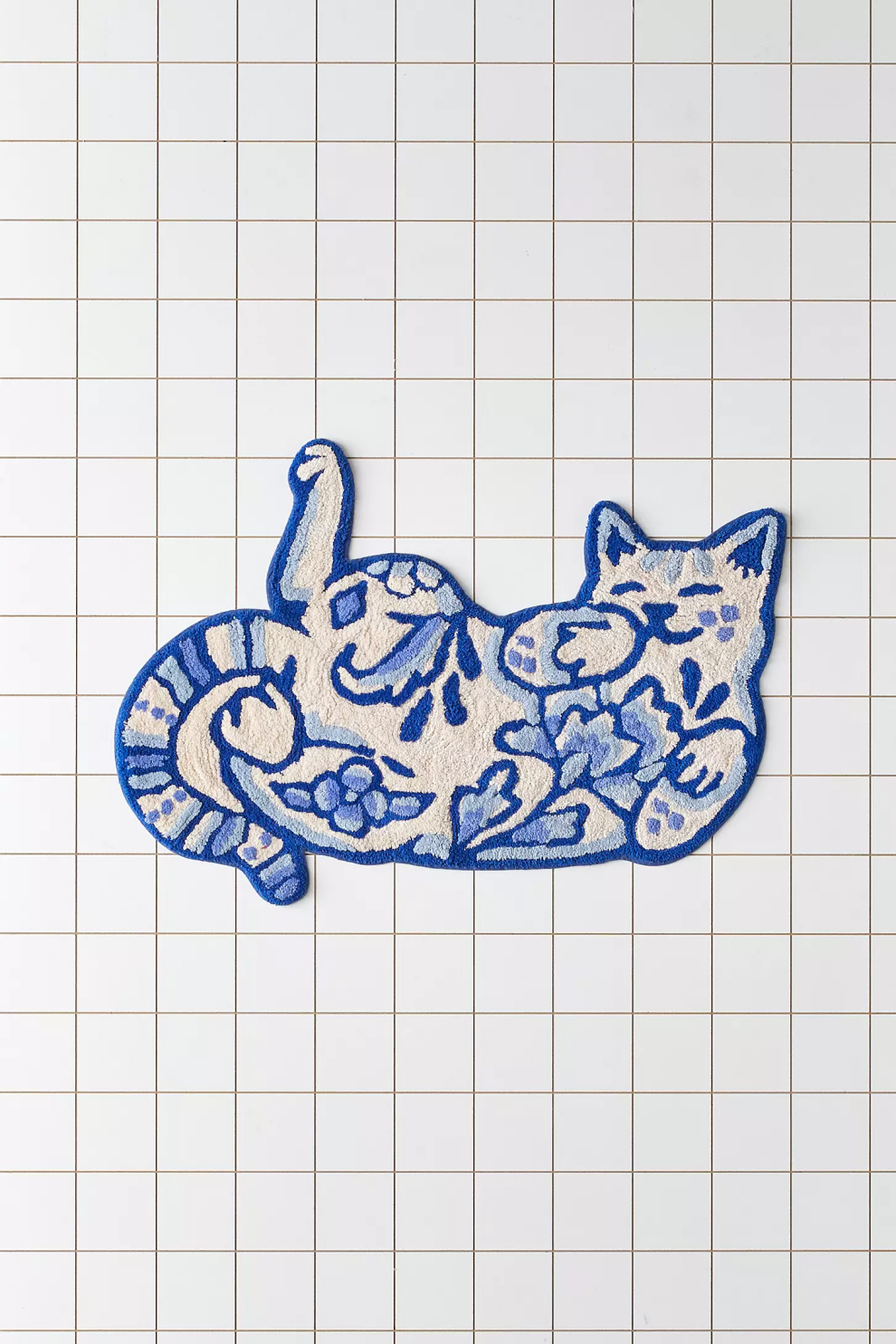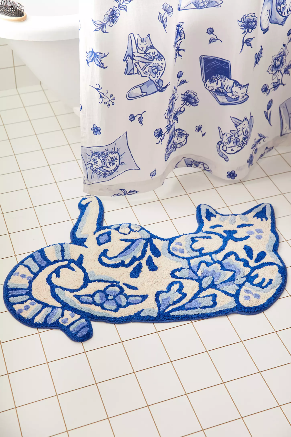 Синий тафтинговый декоративный коврик для ванной в форме кота Whiskers от Орбита Home – уютный арт-объект для стильного интерьера